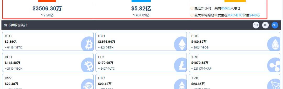 據比特幣家園數據,近1小時內有2.77億資金爆倉,近24小時內就有近8.5萬人爆倉,損失金額超過37億元人民幣!其中,最大的一筆爆倉單發生在MXC-BTC價值448萬美元。