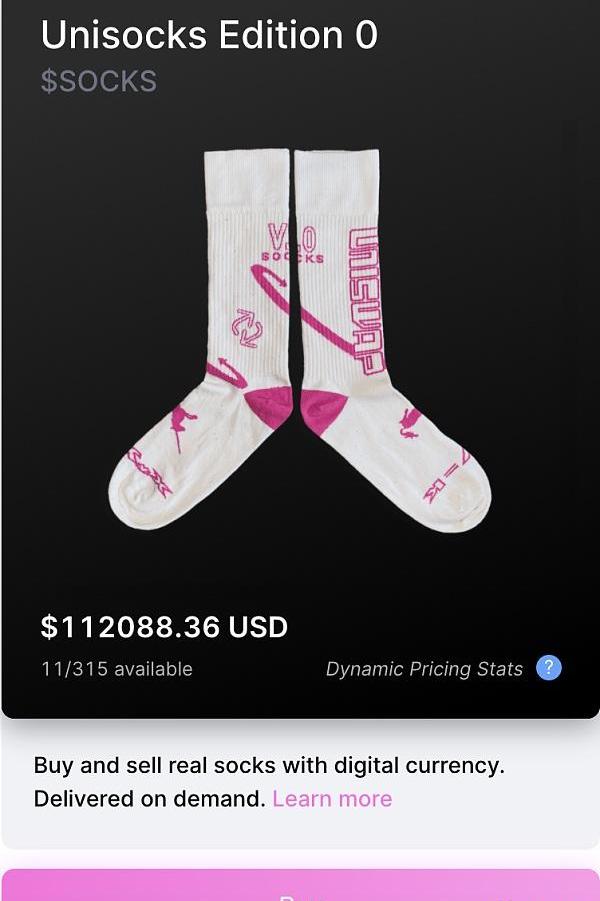 投資者可以交易零碎的ERC20SOCKS,但需要一個完整的SOCKS,才能兌換1個NFT以及1雙實物Unisocks。