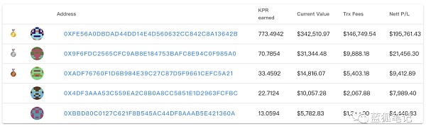 截止到藍狐筆記寫稿時,job市場total?credits超過140KP3R,其中迄今為止賺取收益最多的keeper賺了773.4942個KP3R。