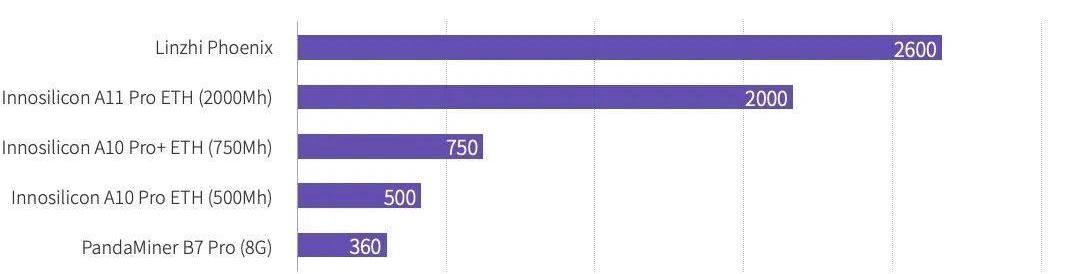 以太坊礦機方面,目前Innosilicon具有一定技術優勢,其最新型號礦機算力可達2Gh/s,遠超除LinzhiPhoenix外的其他以太坊礦機。