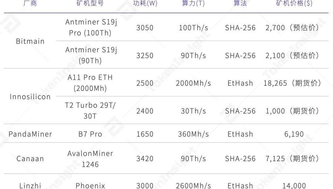 2021年新發布比特幣與以太坊礦機參數統計,來源:各礦機廠商官網,TokenInsight