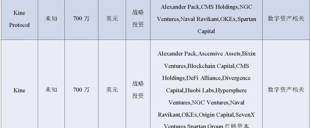 輪次方面,上周戰略投資和天使/種子輪占據大頭,各發生26起和12起。另有7起A輪融資和1起并購融資;場景上,數字貨幣交易平臺上周斬獲最多,基礎技術設施、實體應用場景等賽道也有項目獲得資本青睞;投資機構方面,上周PayPal、老虎全球管理基金等主流機構和Coinbase、Conflux等區塊鏈領域機構都有出手。
