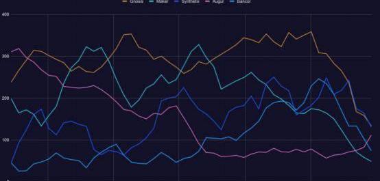 Aave、SetProtocol、mStable、yearn.financial和PieDAO都有一個上升趨勢,并在年底出現了一個強勁的峰值。