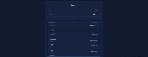 而UST最小抵押比率為150%,mAsset最小抵押比率為200%,質押鑄造的美股合成資產Token也同樣是鏈上的,可在Uniswap和Terraswap上進行交易。
