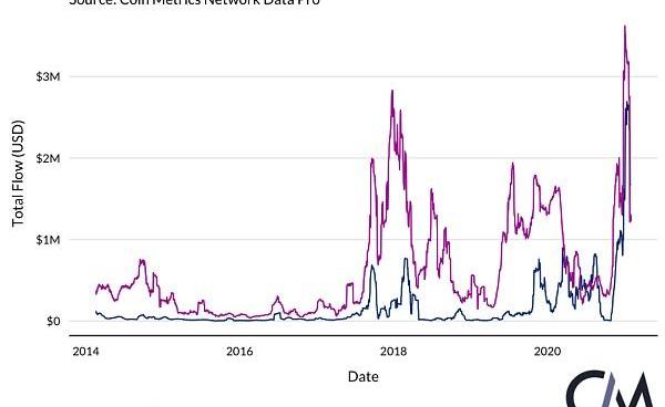 CoinMetrics的礦工-交易所流量是基于我們對礦工和交易所活動的現有估計。現有的流入、流出和供應指標提供了關于市場情緒、交易所健康和網絡去中心化的有用背景。由于問題結構的不同,交易所流量和礦工流量建立在兩種不同的聚類技術上,每種技術都有自己的缺點。
