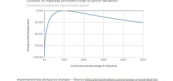 它描述了一種情況,即尋求被動收入的流動性提供者的盈利能力受到了負面影響。如果添加的代幣的價格最終能回到它們加入流動性池時的價格,那么無常損失是不存在的或很小的。但是,如果價格情況與最初的價格情況不同,與只持有資產的情況相比,提取的金額可能低于后者的總額。