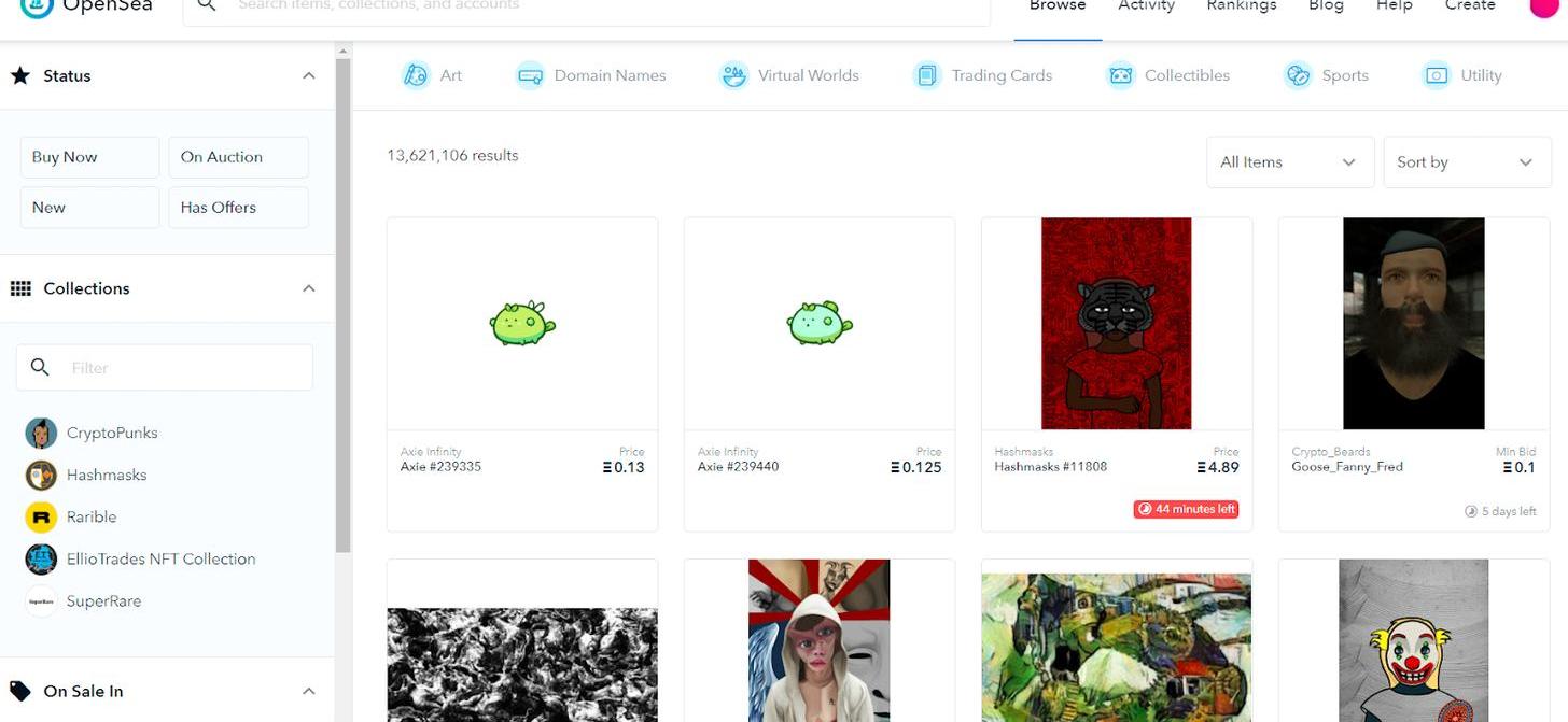 以太坊已經擁有多個像OpenSea和Rarible這樣的通用NFT市場,這些市場聚集了整個生態系統中的NFT,從而使用戶可通過單一,對用戶友好的儀表板購買各種NFT資產。