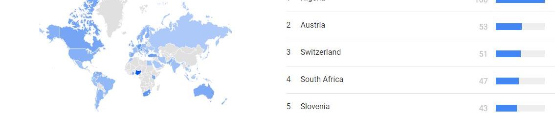 “Bitcoin”的區域搜索流量:谷歌趨勢