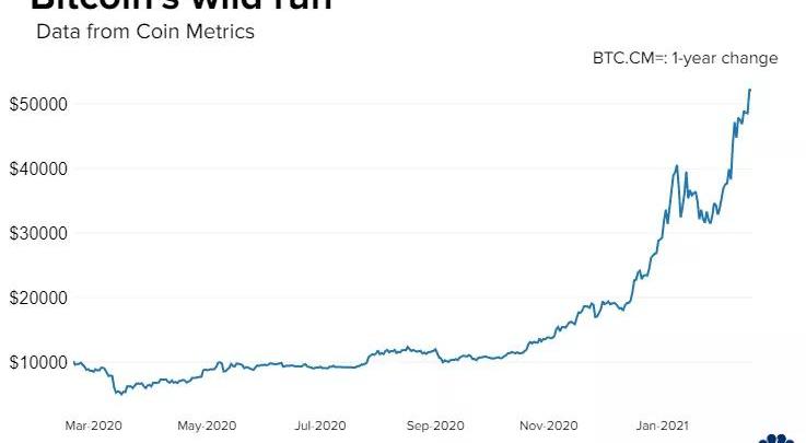 1900/1/1 0:00:00春節期間,全球各類資產均大幅上漲,比特幣價格勢如破竹,價格站上52000美元再創新高,2月累計漲幅高達60%,總市值超越騰訊.