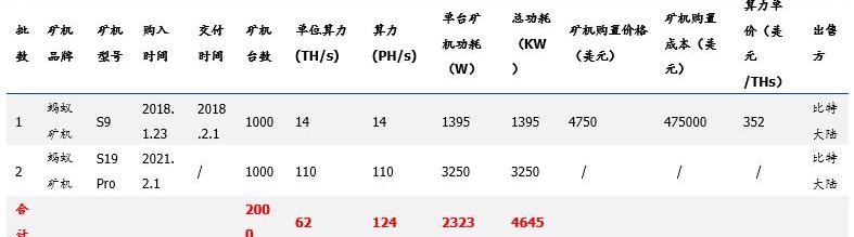 2021年1月,公司繼續購買6440臺CanaanAvalonMiner1246,到2021年底全部部署后,算力將增加到估計的1229PH/s。公司新目標是到2021年底達到2000PH/s。