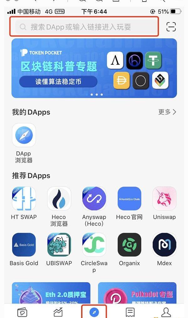 導入成功后,可通過火幣往提取Heco資產至錢包,點擊“發現”按鈕,在頂部輸入Newland官網鏈接進入