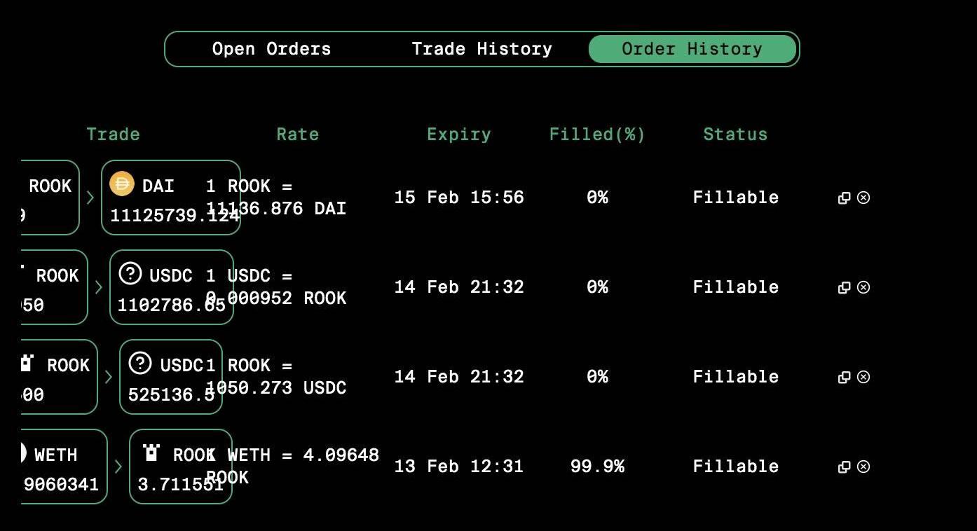 當然,上面所提到的方式,只是被動式的挖礦方式,一些機靈的參與者還會采用主動的方式進行套利挖礦,其可以故意提交低于市場價的訂單,吸引Keeper立刻為其成交訂單,獲得ROOK獎勵后便在市場上拋售完成套利,但這種方式需要監控每天的交易套利情況,以估算成本是否低于獲得的獎勵。