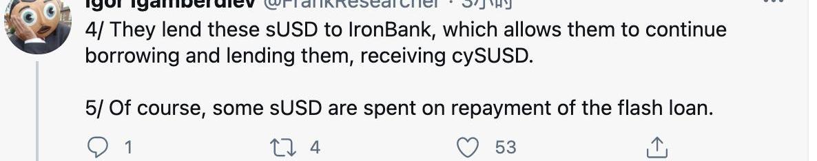 4.他們將這些sUSD借給IronBank,從而使他們可以繼續從IronBank借入和借出cySUSD。