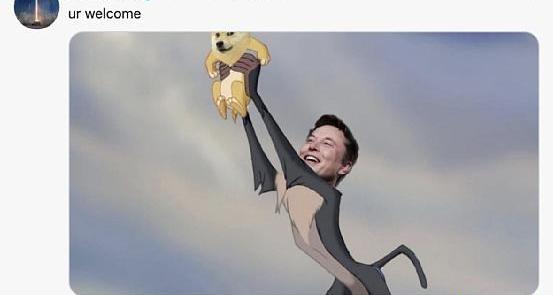 隨后,馬斯克又發文自夸稱“不用謝”,同時轉發了一條網友制作的惡搞圖片:馬斯克化身電影獅子王里的狒狒長老,高高舉起“狗狗幣”。