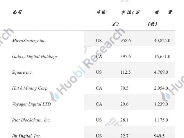 我們在今年發布的《全球區塊鏈產業全景與趨勢年度報告》中曾進行調研分析。根據BitcoinTreasuries數據,截止2020年末,目前全球有15家上市公司自行購入并持有超7萬枚BTC,其中12家位于美國或加拿大。持幣量最高的Micro