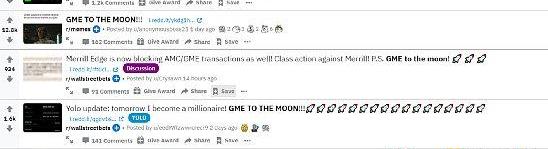 在大空頭吃癟的同時,散戶們卻在這一次多空對決中獲利良多。上文中,曾經以5萬美元購買GME股票的DFV,現如今已然有4千萬美元的回報,而在Reddit上,GMEtothemoon,holduntil1000的口號不絕于縷。