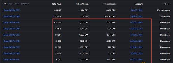 5、CAN代幣價格被人為操縱至0.35美元附近。
