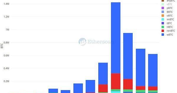 就像Uniswap仍然是DEXs之王,wBTC仍然是BTC代幣之王。2020年在以太坊上交易的絕大多數BTC都是通過wBTC完成的,而renBTC則遠遠落后。交易量在9月份達到峰值,達到140萬BTC。
