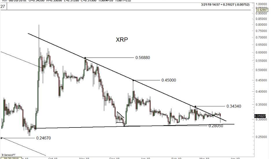 在高度控盤之下,瑞波方面有能力通過控制XRP出售數量來控制其市場流通量以及漲跌幅度,加密貨幣分析師Peterbrandt曾在19年3月以XRP價格K線圖為例發推表示:「莊家的動力在這個巨大的下降三角中發揮了作用,這說明市場是被操縱的,操縱者將價格維持在了一個相對穩定的水平。」