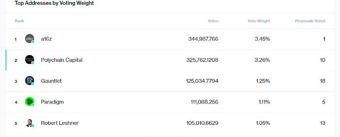 CalvinLiu是Compound的戰略負責人,而Polychain則是Compound最大的投資人之一,因此,因為早期的投資,他成為了Compound治理過程中最大的代表之一。事實上,在所有個人或組織中,Polychain擁有第二大投票權,包括RobertLeshner本人。他們在Compound治理過程中也是一個非常積極的參與者,已經對10個提案進行了投票。