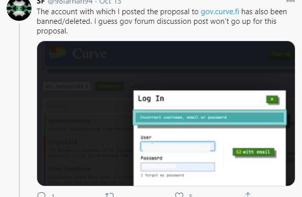 Curve團隊以壓倒性的版主力量做出了回應。SF看到自己在Curve上的框架賬號被刪除。