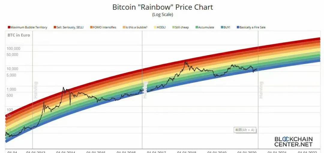 比特幣價格對數彩虹預計可能減半后的上漲才剛剛開始
