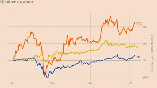 比特幣與黃金和標準普爾500指數的相關性高于年初。一年期的相關性仍為負或接近零,但是在過去的10個月中,它一直在穩步攀升。比特幣的投資回報率最高。