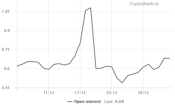 0.70的看跌/看漲比率表明看跌期權未平倉頭寸比看漲期權低30%,因此市場多數看漲。