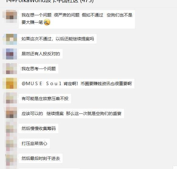 波卡的中國社區群內對KSM投票的關注度非常高,一部分人表示KSM的拆分僅屬于短期利好,帶來投機情緒,會對DOT真正的技術發展有影響,所以反對拆分;另一部分人則認為KSM拆分會像2個月前的DOT拆分一樣,至少上漲1倍以上,絕對支持。