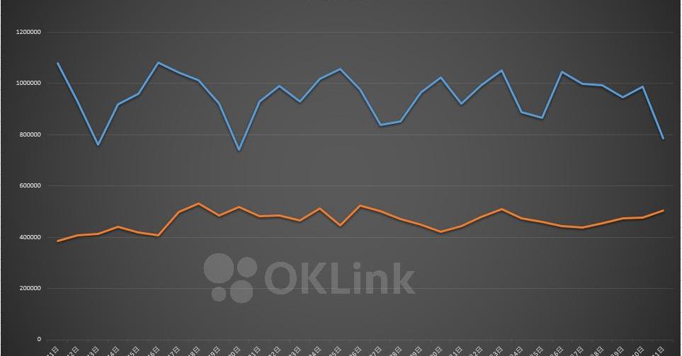 比特幣的鏈上交易筆數整體依舊在220萬上下波動,而且這種相對平穩似乎尚未有中止的趨勢。而以太坊的交易筆數在經歷過全民挖礦的喧囂后,也已經恢復到一個相對穩定的水平。