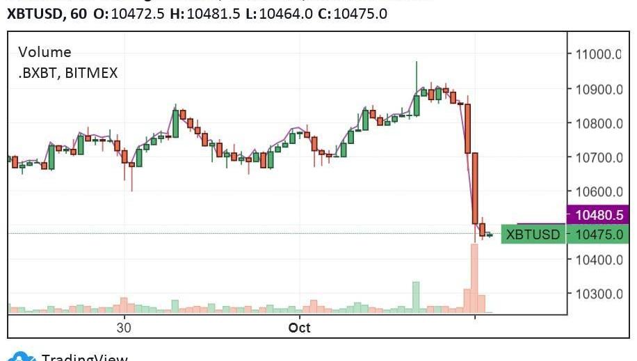 盡管業界預計對BitMEX的指控將在一天之內發生,但Reed被捕卻出乎意料。消息傳出后,BTC價格立即從10,883美元暴跌至10,437美元,跌幅為4.11%。
