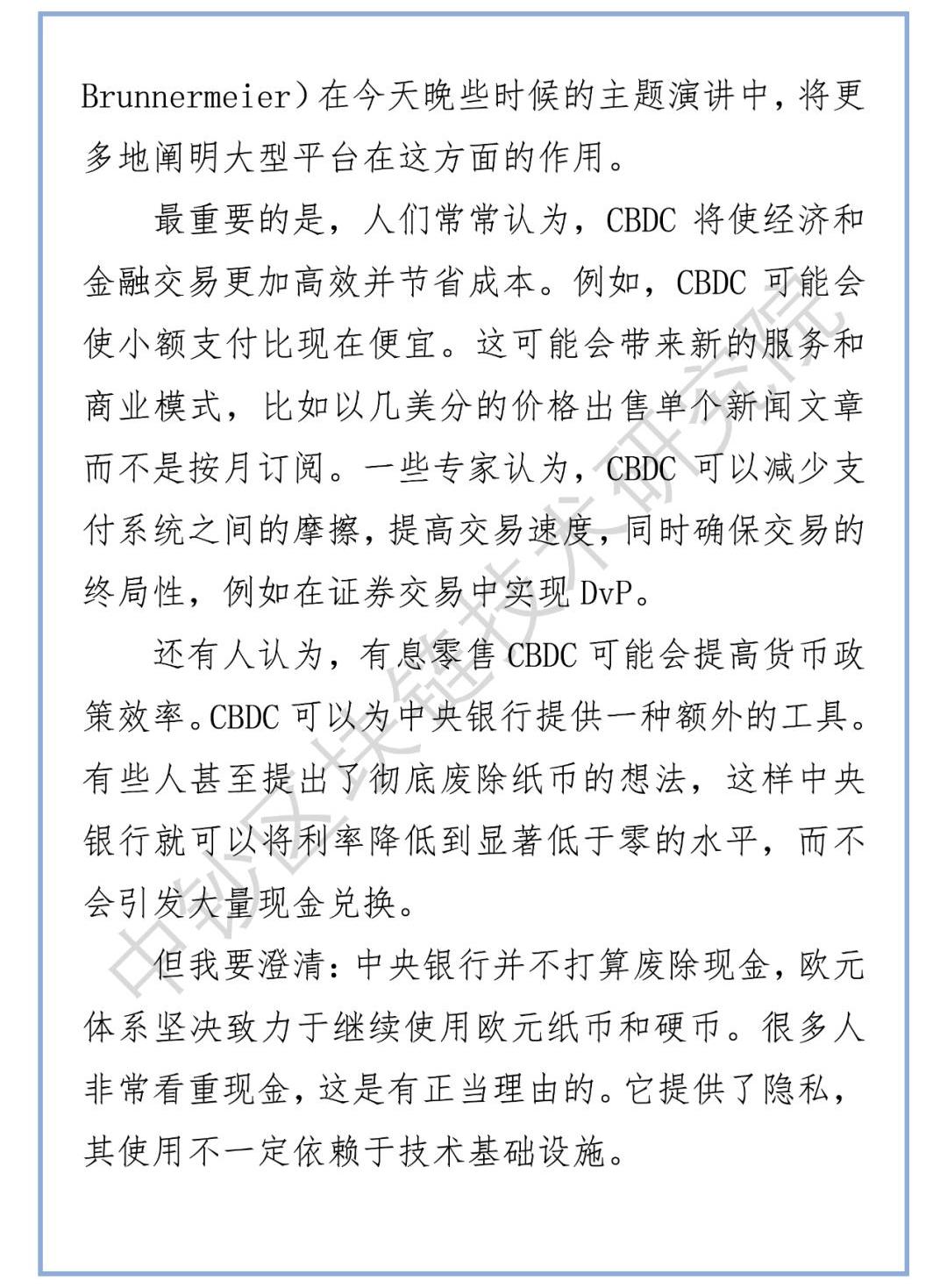 非現金支付工具的普及和Covid-19疫情蔓延無疑給無現金化支付帶來了額外的推動力。長期來看,無現金支付的趨勢是顯而易見的。隨著越來越多的中央銀行正致力于研究發行CBDC的可能影響,甚至有人提出以CBDC全面替代現金的想法。但JensWeidmann明確表示,歐元體系堅決不會廢除現金。零售CBDC雖然像現金一樣允許個人持有中央銀行貨幣,但無法提供與現金等同的匿名性。
