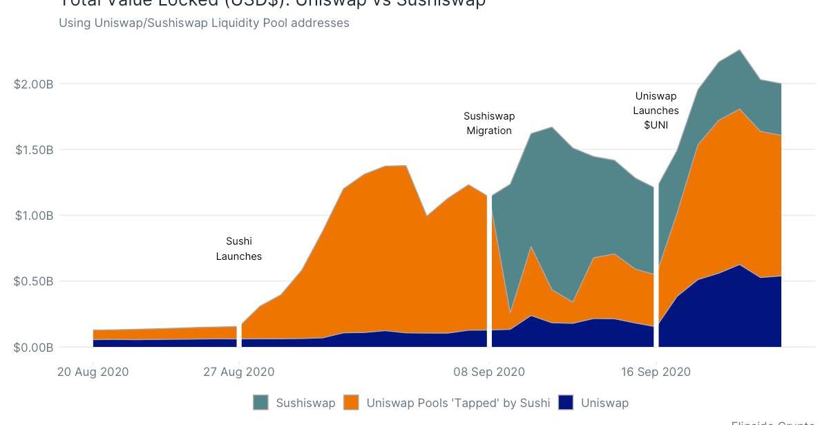 XRP/HKD-6.96%人們普遍認為SushiSwap從Uniswap吸取了流動性,但加密貨幣鏈上分析資源FlipsideCrypto的新數據表明,去中心化交易所的推出機制實際上使Uniswap受益,因為它將新的資金注入了其流動性池。