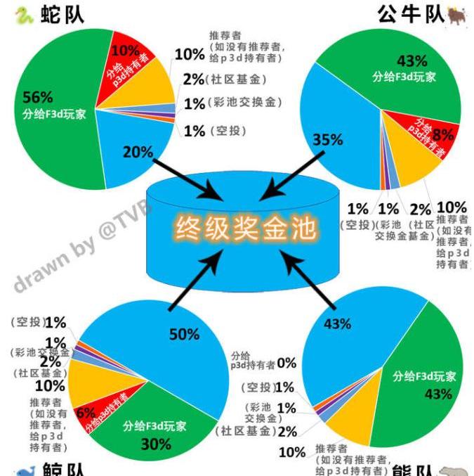 仔細想了一下,這個這是有源可追溯的。2018年的以太坊資金盤游戲fomo3D,其實就是不同的資金池分配方式,還整成蛇隊、鯨隊等等……