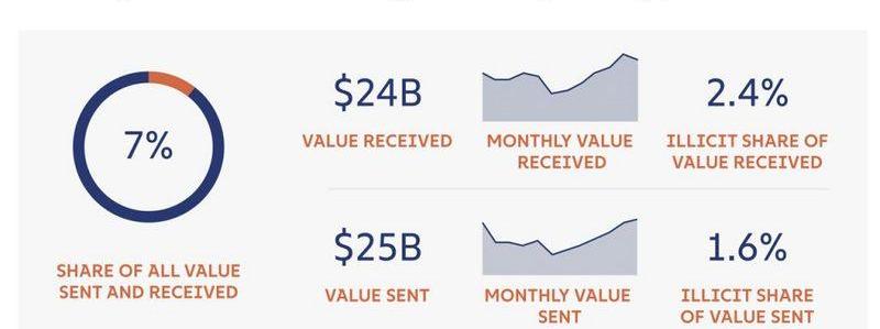 NWE擁有強大的專業市場,但非法活動的數量也驚人。就加密活動而言,NWE是僅次于東亞的第二大地區。NWE地區占全球所有加密交易的17%。