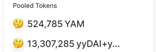 目前YAMV3的價格回落到29美元。目前在?YAM/yUSD池子里的YAMV3有52萬枚。????