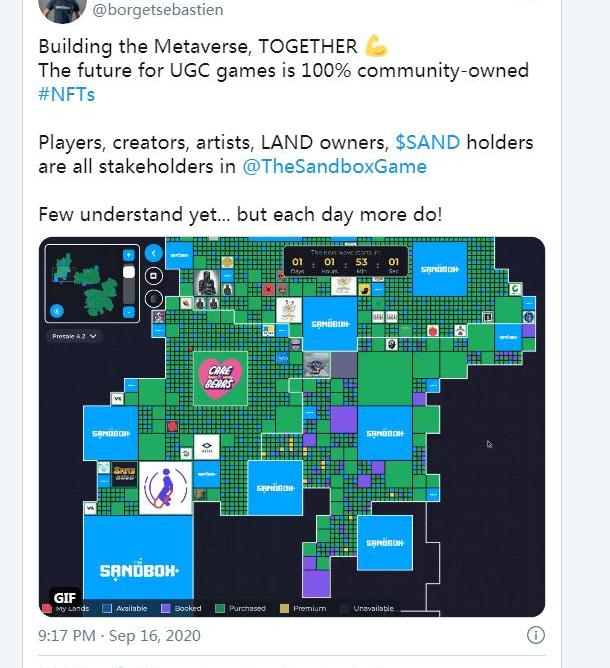 最近Binance正在著手與Sandbox相關的事情,它先是出售了300萬美元的SAND游戲代幣,然后又購買了4012個自己的LAND代幣。根據Borget的說法,Binance的參與提高了這項游戲的知名度和它獨特的經濟地位,甚至是在它走向大眾之前。