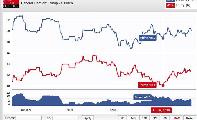 民調顯示,特朗普的支持率自8月16日低點后企穩回升,上升角度明顯大于拜登的支持率。
