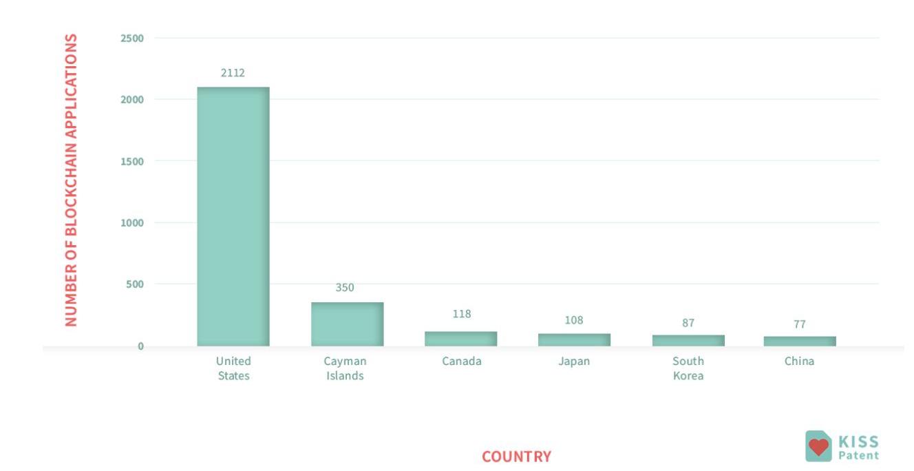 IBM和阿里巴巴擁有最多的區塊鏈專利。據KISSPatent數據,阿里巴巴已提交了200多項專利,而IBM提交了100多項專利。但是美國銀行和萬事達等其他美國公司也已提交了數項專利申請,這大大提高了美國的專利申請總量。2020年上半年區塊鏈的專利申請數量比2019年全年都要多。
