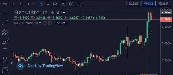 在BM的連續推動下,EOS也直線拉升,出現了連續上漲行情。根據火幣全球站數據顯示,EOS從8月15日-16日連續上漲,漲幅約為25%。