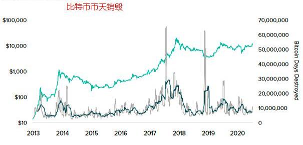 投資者還可以觀察比特幣幣天銷毀指數(Bitcoindaysdestroyed,BDD),該指標用來衡量某一天所有比特幣移動的總年齡的指標。