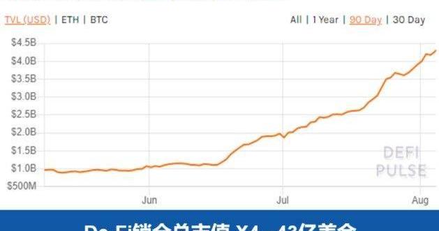 過去的兩個月間,DeFi和流動性挖礦在加密金融領域的熱度居高不下,甚至一定程度帶動了行情的可觀上漲。DeFi鎖倉總市值也從今年6月份不到10億美金的規模,上漲四倍以上,超過40億美金。