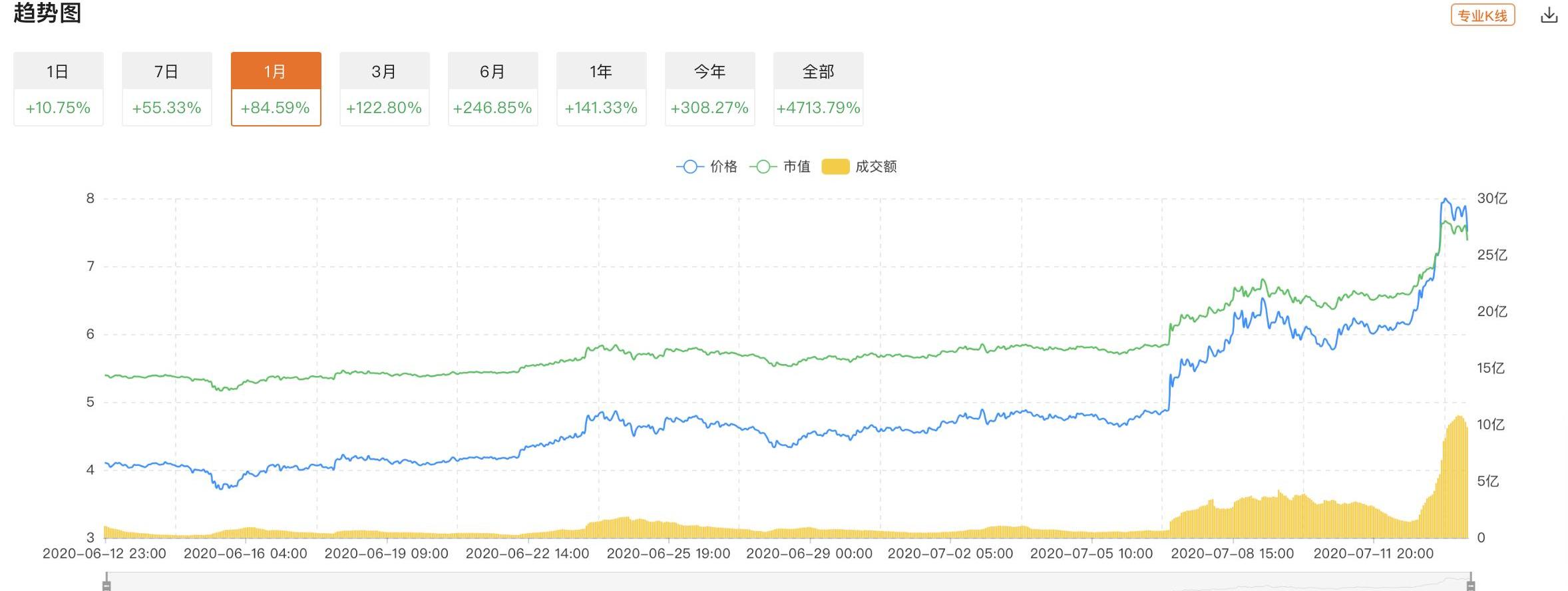 XRP/HKD-5.96%預言機Chainlink的本地代幣Link價格今日最高飆升了34%以上,創下了歷史新高,至8.48美元,市值也達到了25億美元。根據QKL123數據顯示,Link的市值排名一度達到了第9位。Link在過去1個月內漲幅達到了84%。