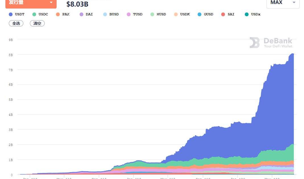 說到穩定幣,第一就是USDT,穩定幣中的扛把子,號稱“幣圈印鈔機”,今年以來,大量增發USDT,在整個加密貨幣市場市值排第三。