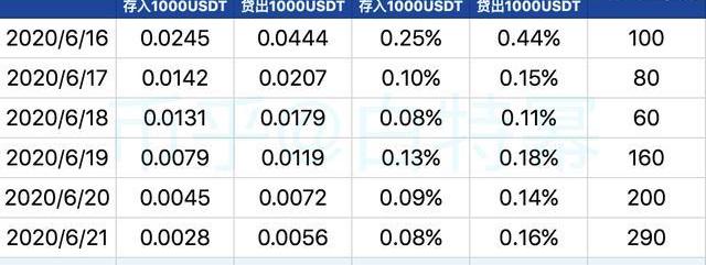 從圖中我們可以看到,現在收益已經越來越小,存入1000枚USDT在6月22日,所能獲得的COMP金額折算成美元只有0.4美元,未來這個收益率還會進一步降低。