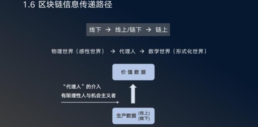 剛才的模型,這個思考完以后,如果區塊鏈在實體經濟產生價值,因為線下世界到鏈上的過程中,存在著失真,必然要用可容錯,所以我加了一個“可容錯”,這是一個區塊鏈的感性認知給大家。