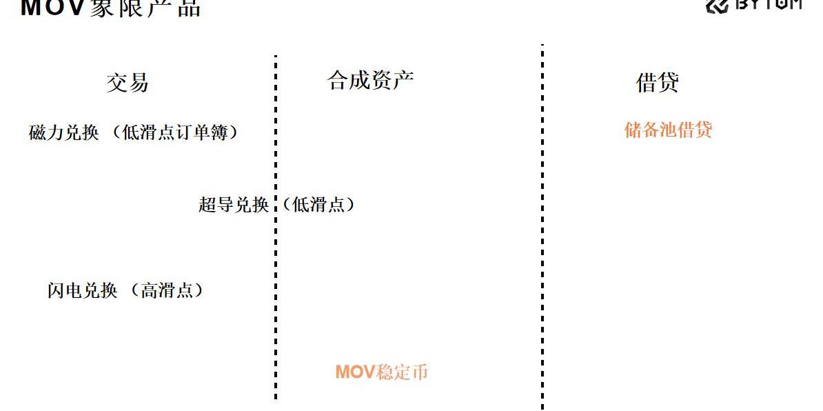 我們在做的磁力兌換和閃電兌換屬于交易,超導兌換屬于合成資產和交易。儲備池借貸、穩定幣是我們目前主要的發力方向。