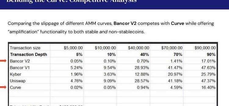 與其他自動作市機制曲線相比,BancorV2提供的最小滑點功能不僅支持穩定幣,還支持非穩定幣