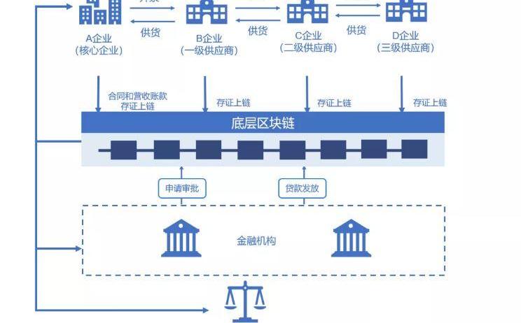 通過打造開放、透明、高效的分布式網絡,區塊鏈將供應鏈上下游企業、核心企業、銀行等參與方接入到區塊鏈網絡中,實現核心企業信用的多級穿透。將應收等資產的確認、流轉、融資、清分等流程上鏈,做到資產確權;同時,鏈上資產可進行拆分和多級流轉,推動資金流在鏈上移動,化解供應鏈末端中小型企業的融資困境。