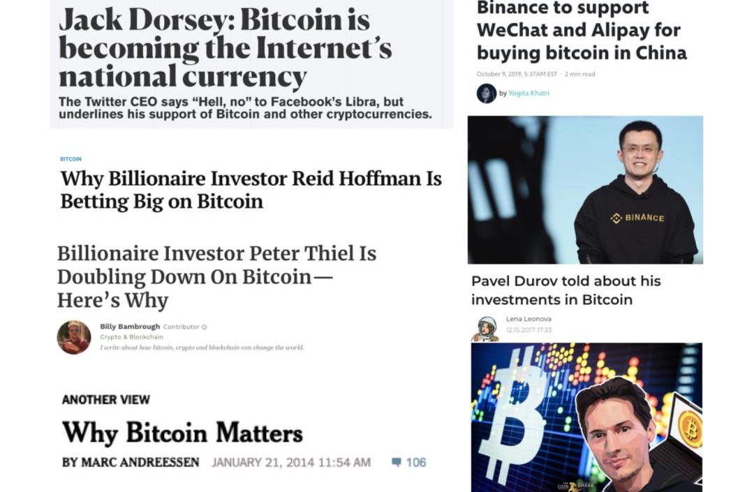 例如,杰克·多爾西?(JackDorsey)?運營Twitter,雷德·霍夫曼?(ReidHoffman)?創建了領英(LinkedIn),馬克·安德森?(MarcAndreessen)?和彼得·泰爾?(PeterThiel)?都是?Facebook的董事會成員——但他們全都支持比特幣。